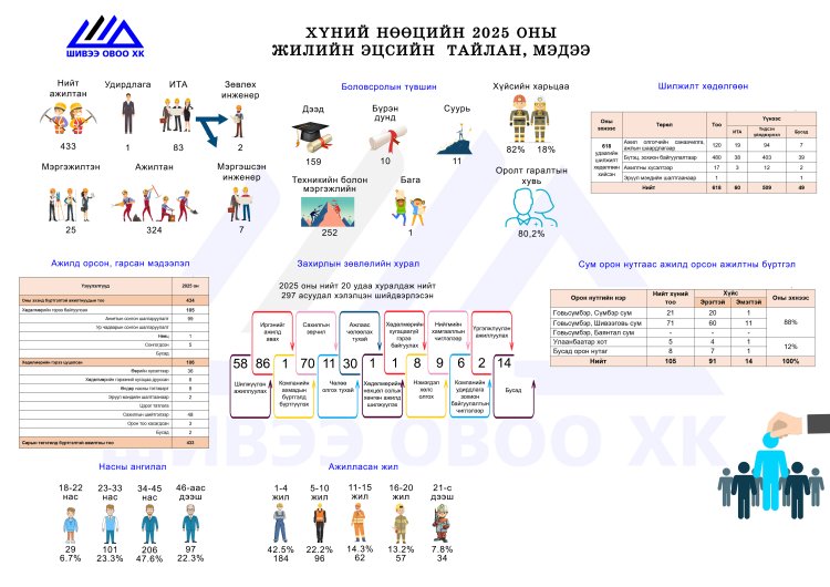 2023 оны 12 дугаар сарын 31-ний өдрийн байдлаар нийт 431 ажилтны 392 ажилтан буюу 90% нь орон нутгийн иргэд, 39 ажилтан буюу 10% нь өөр орон нутгийн иргэд ажиллаж байна.