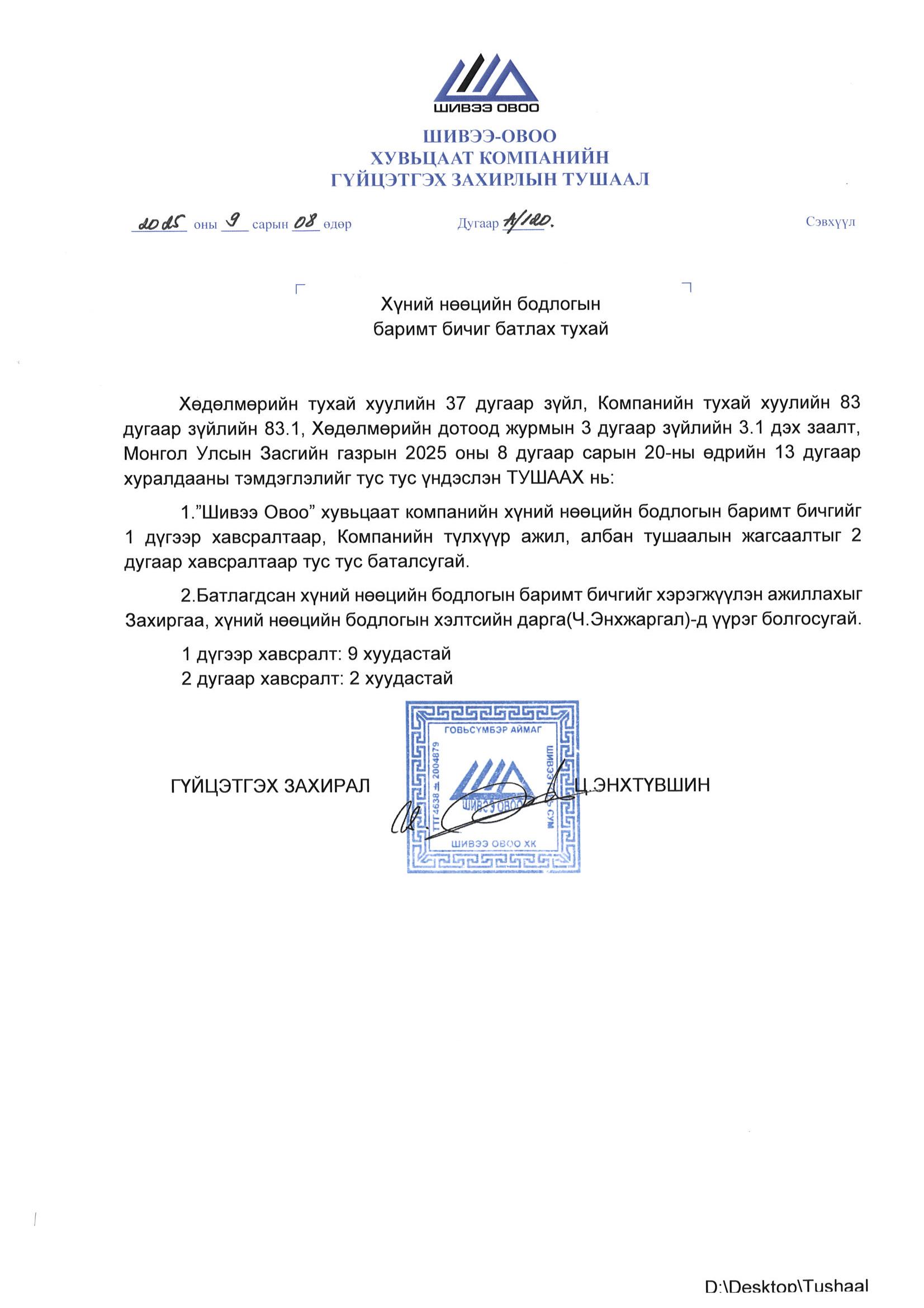 Хувьцаа эзэмшигч болон ТУЗ-ийн тогтоол шийдвэр