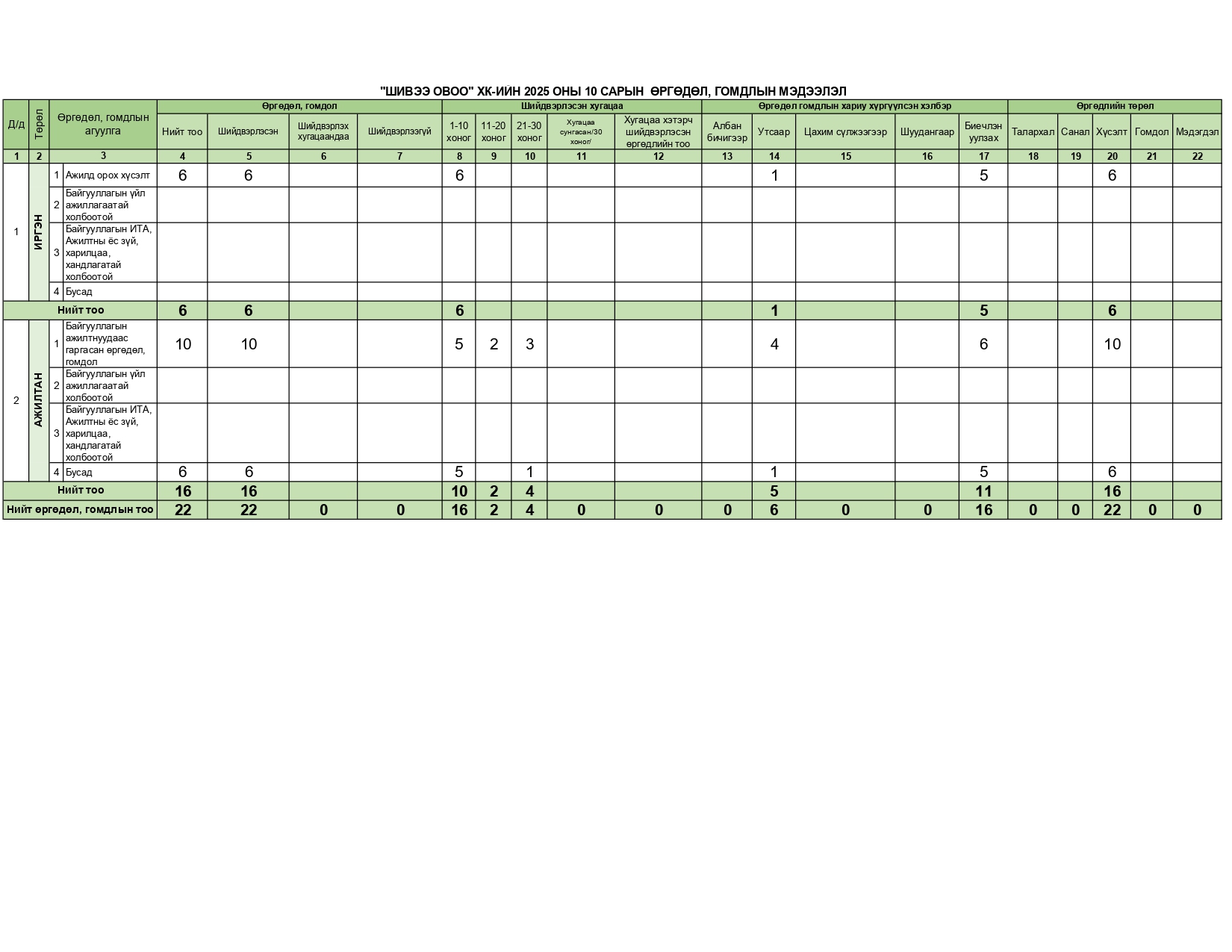 Өргөдөл, гомдол 2025 оны 10 сарын байдлаар мэдээлэл