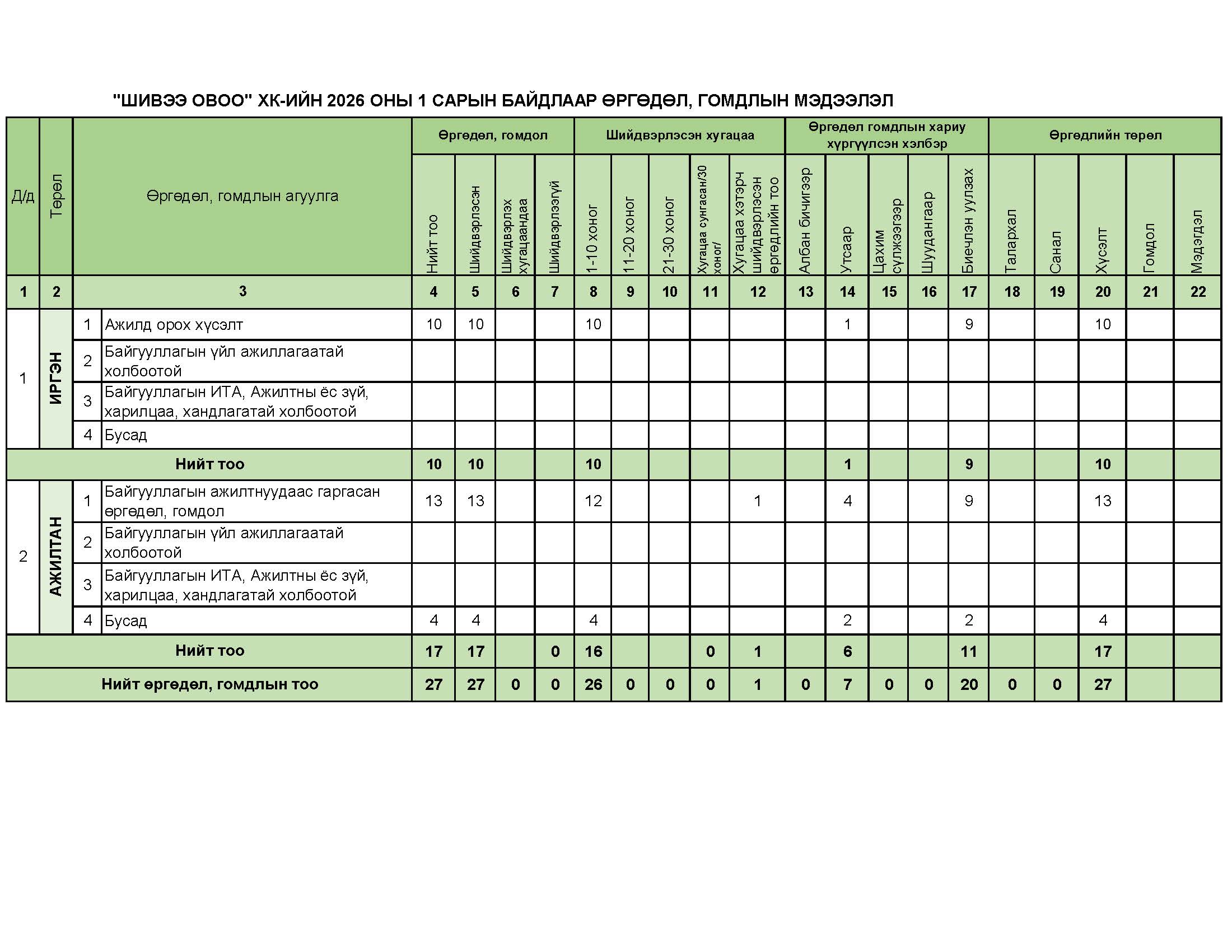 Өргөдөл, гомдол 2026 оны 1 сарын байдлаар мэдээлэл