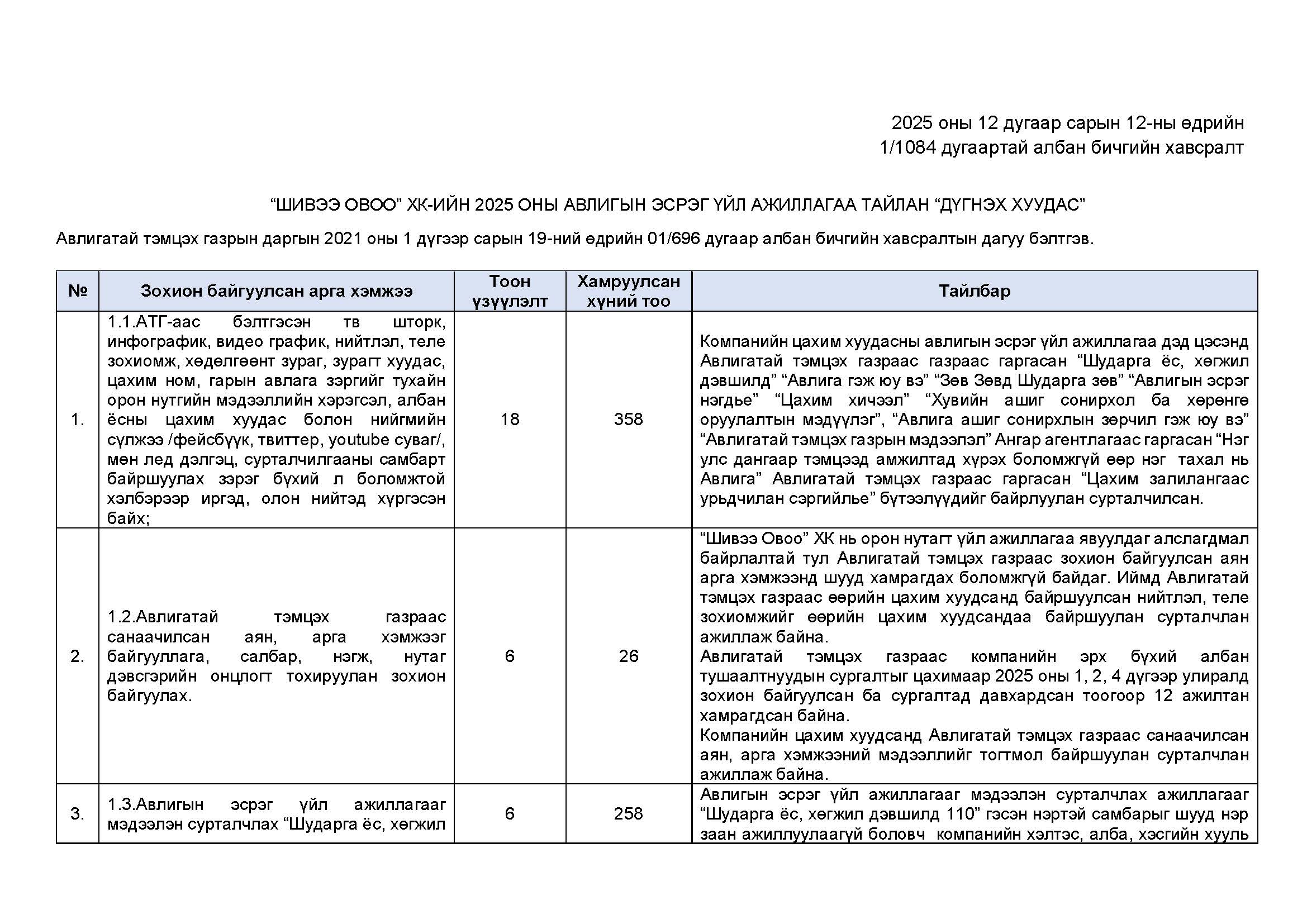 2025 оны Авлигатай тэмцэх үйл ажиллагааны тайлан.