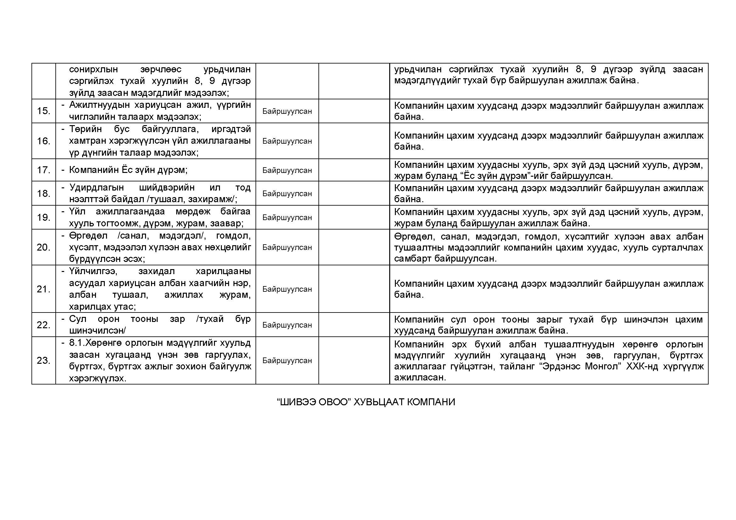 "Шивээ-Овоо"ХК-ийн Авлигын эсрэг үйл