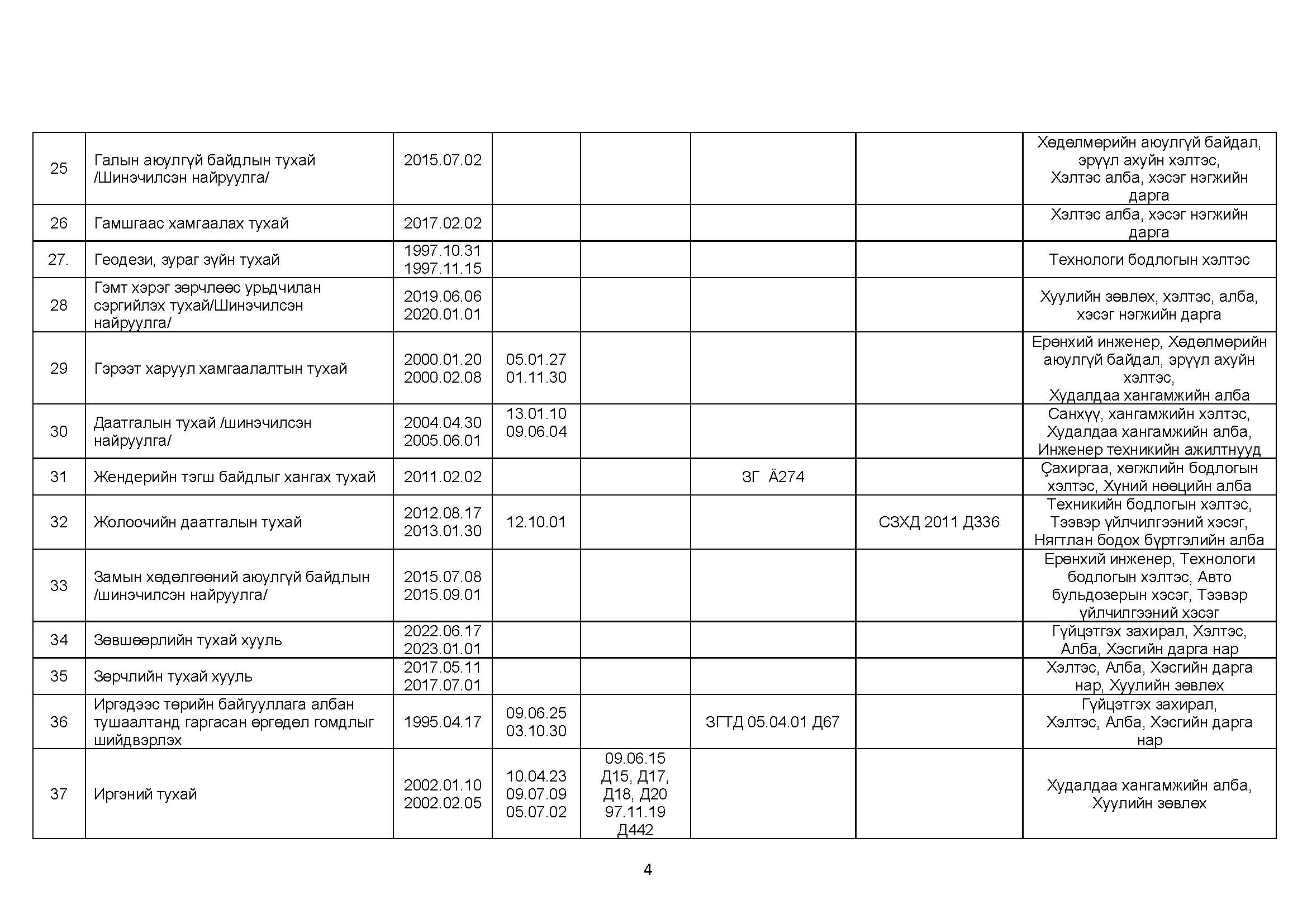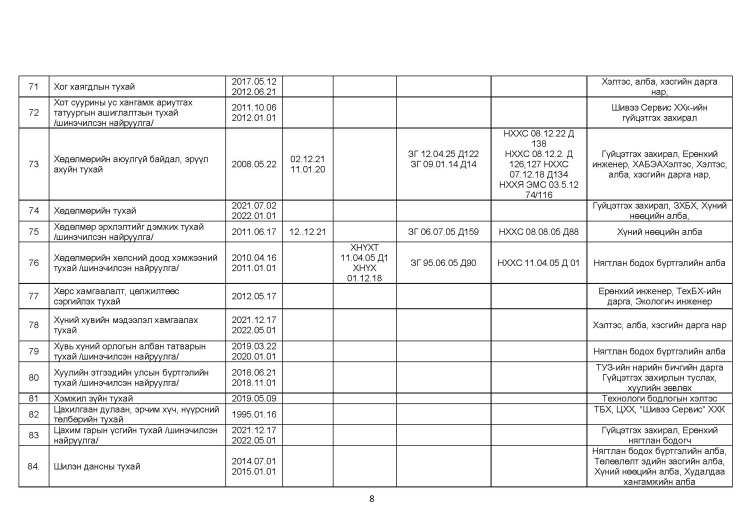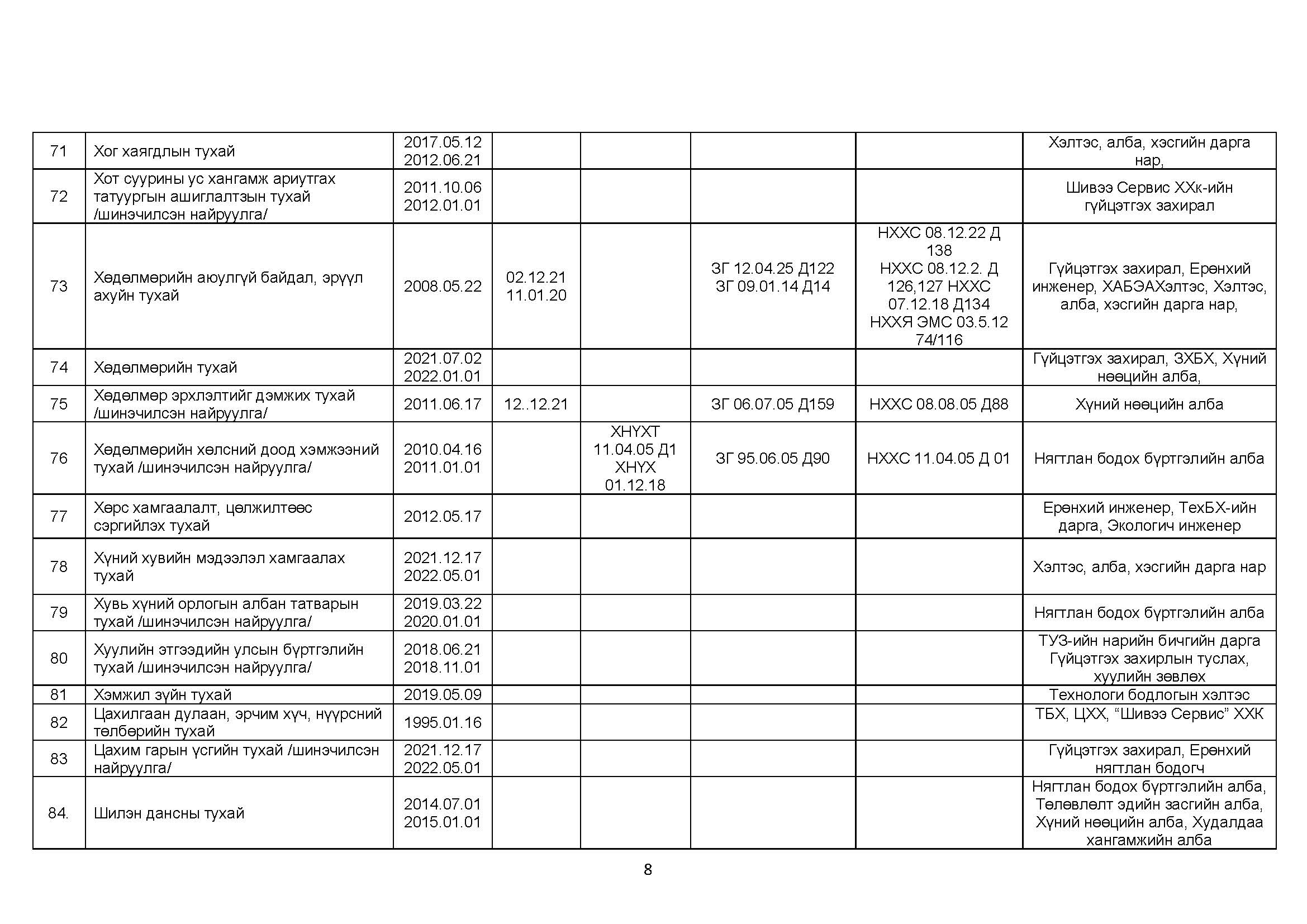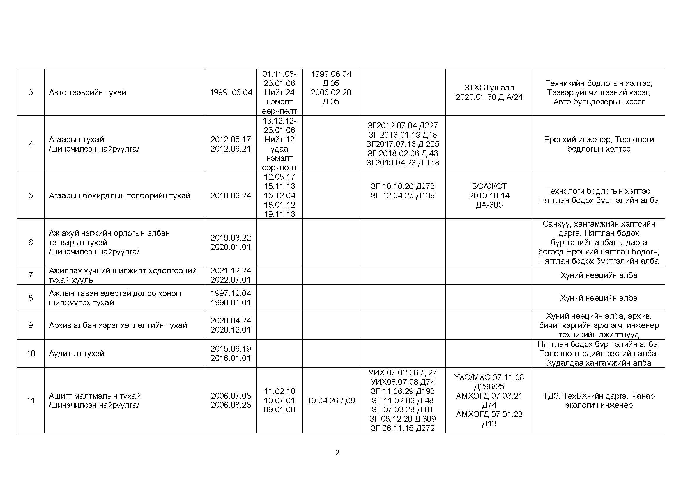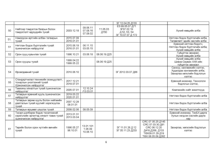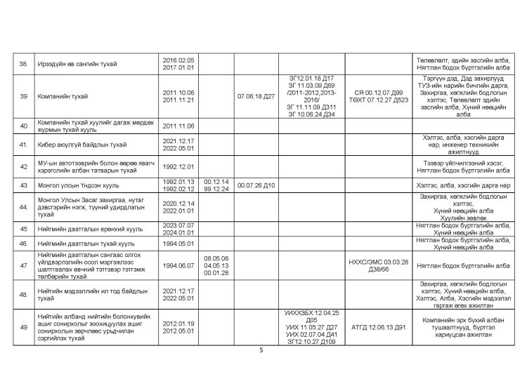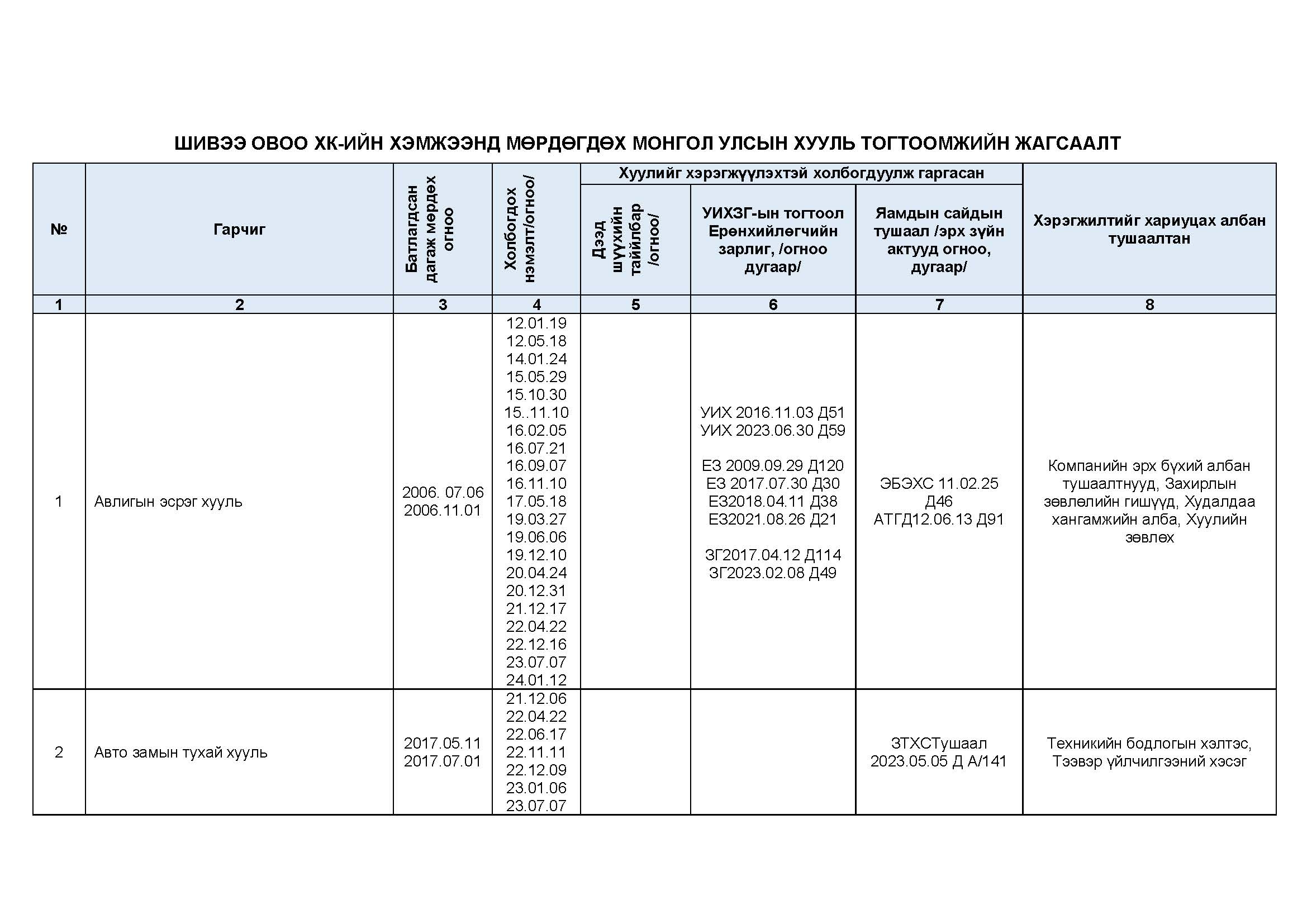 ШОХК мөрдөгдөх монгол улсын хууль тогтоомжийн жагсаалт