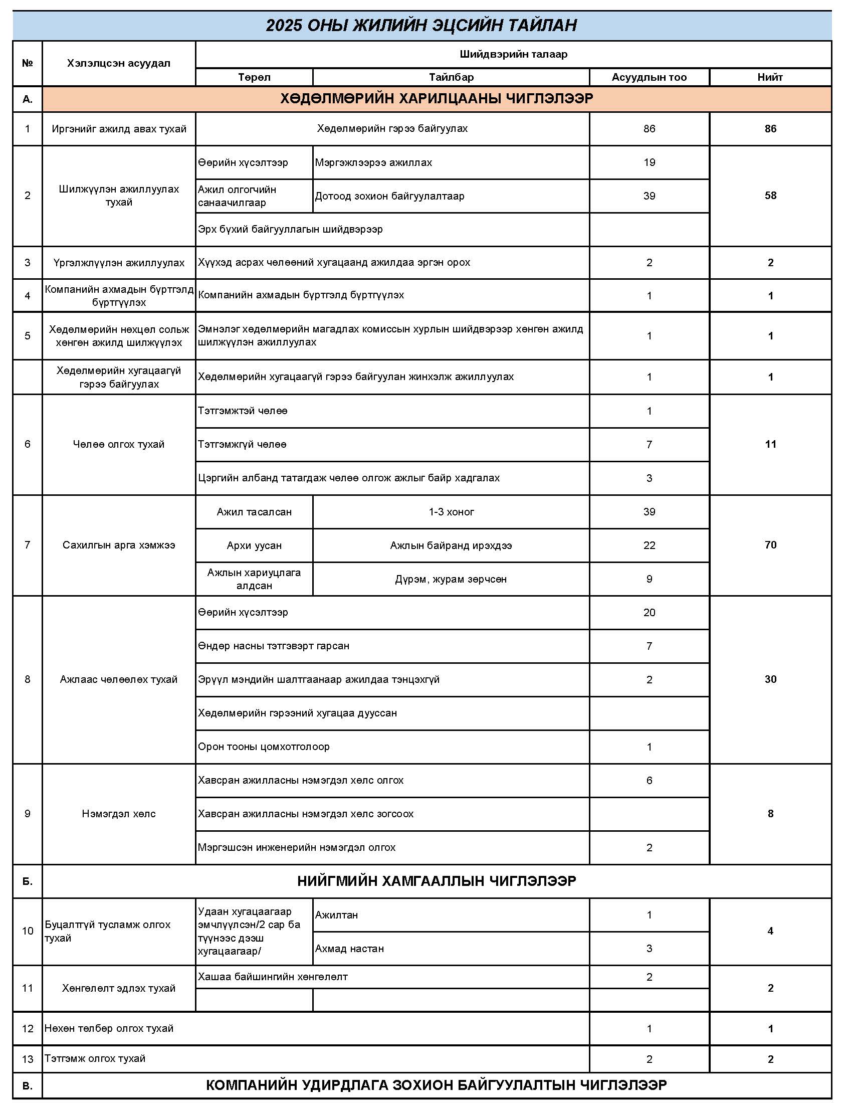 2025 ОНЫ ЖИЛИЙН ЭЦСИЙН ТАЙЛАН ЗАХИРЛЫН ЗӨВЛӨЛИЙН ШИЙДВЭР