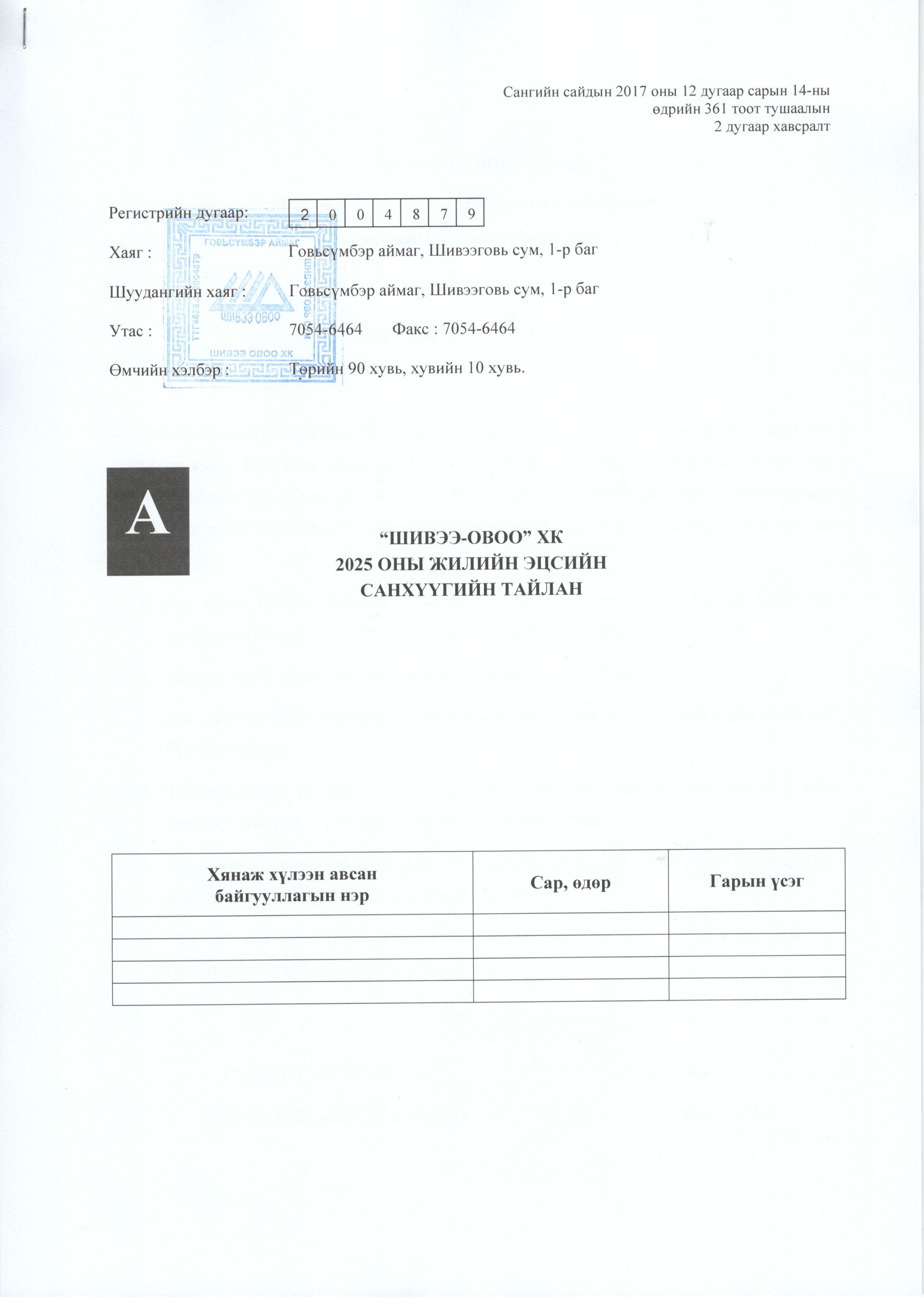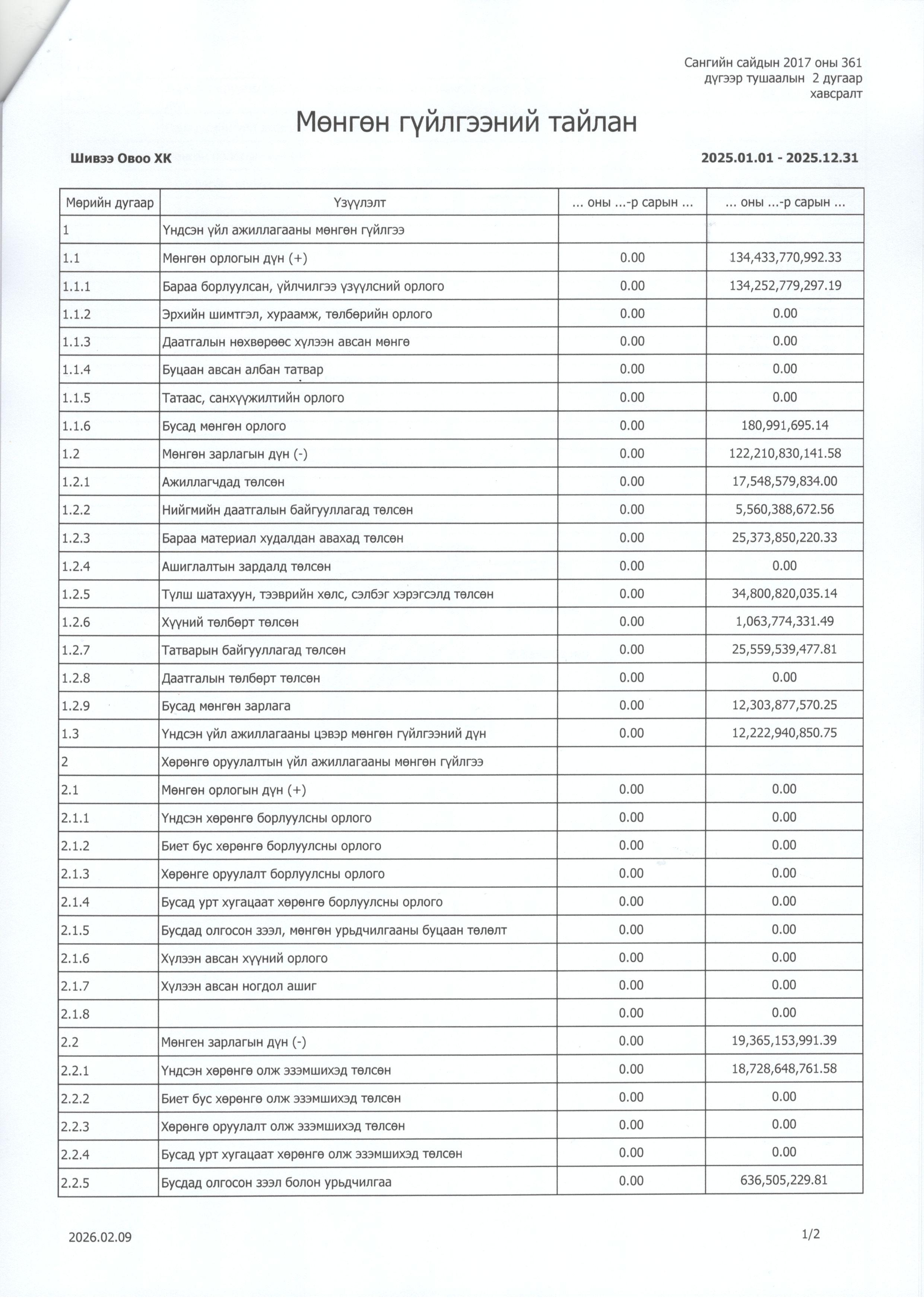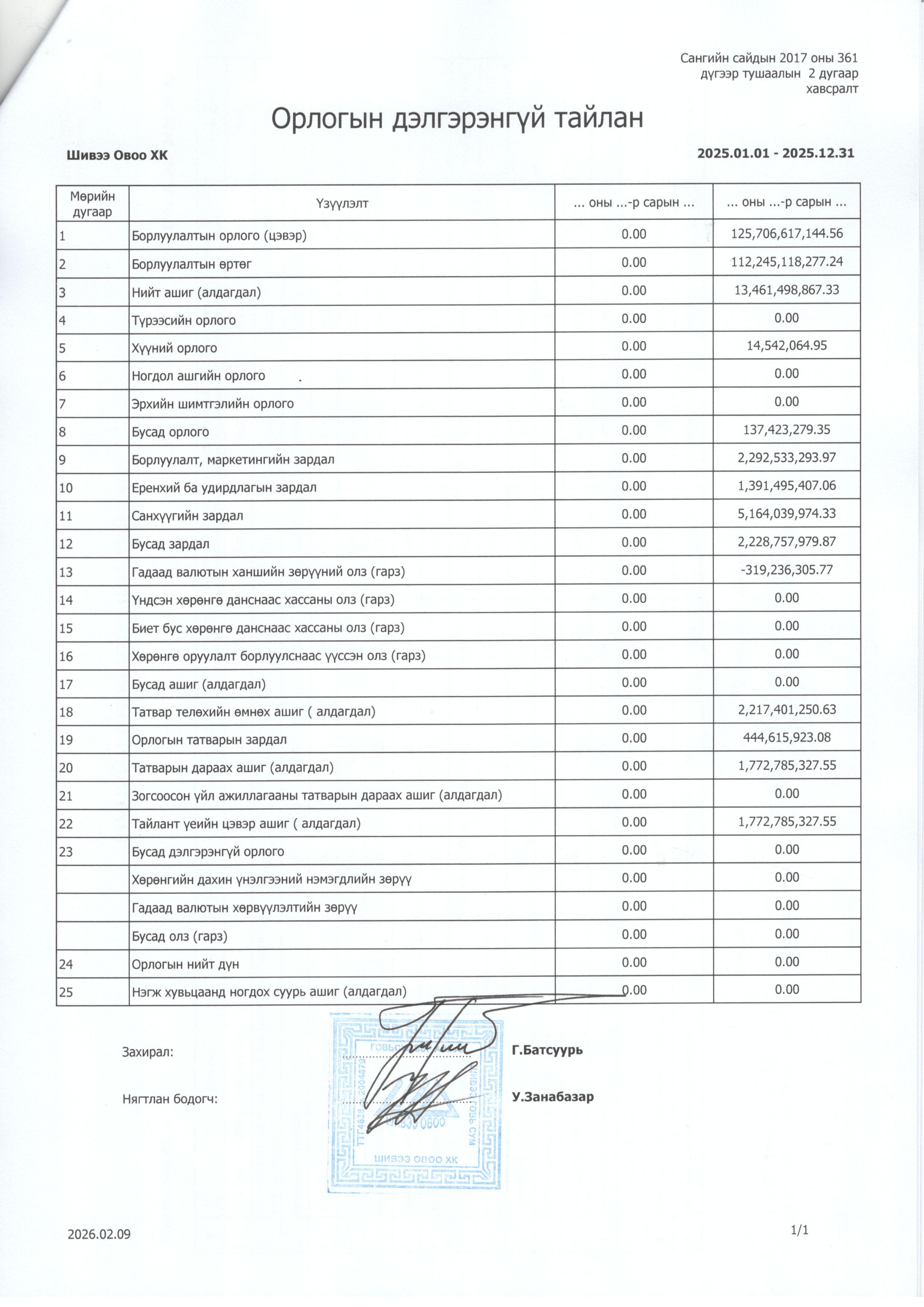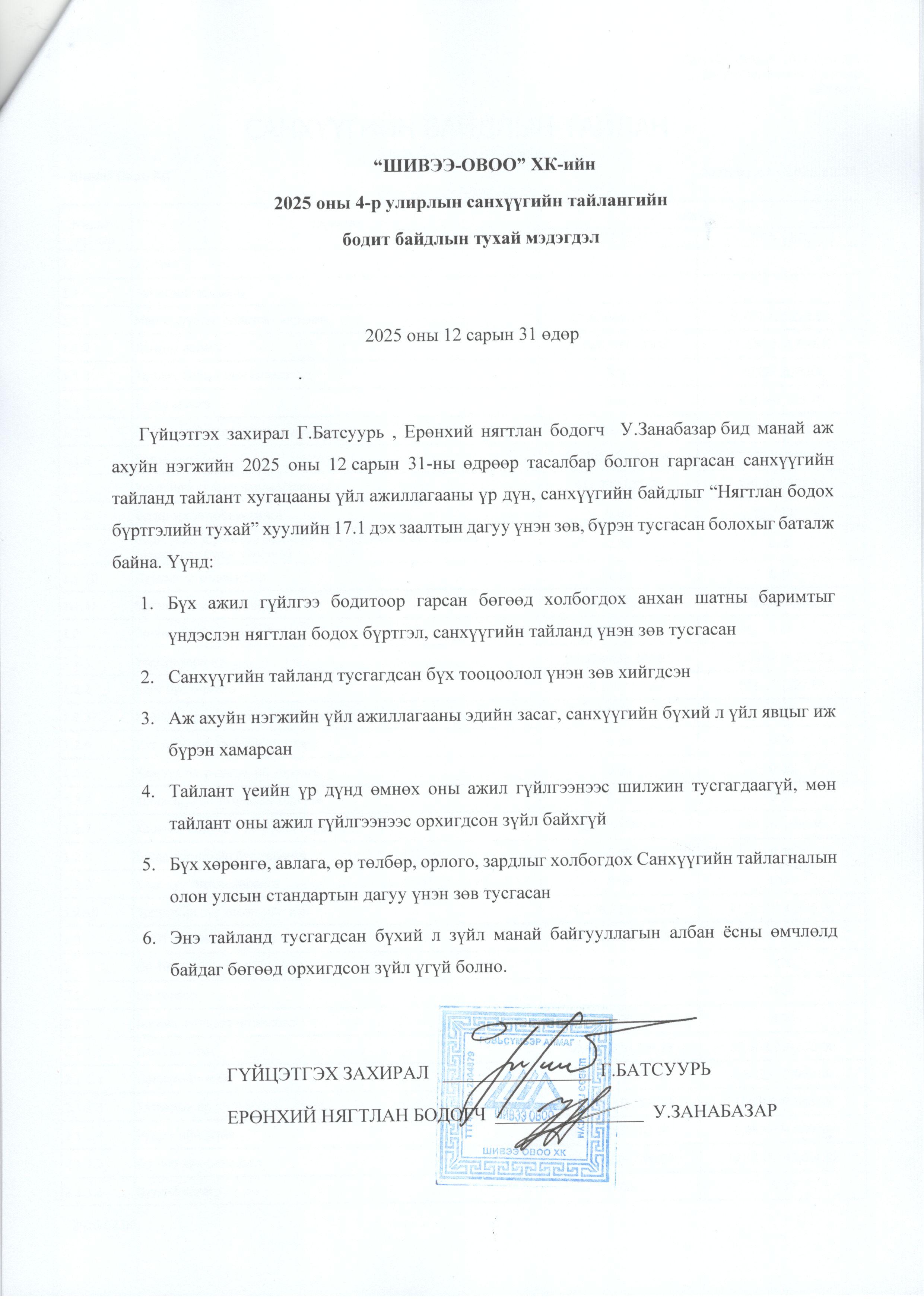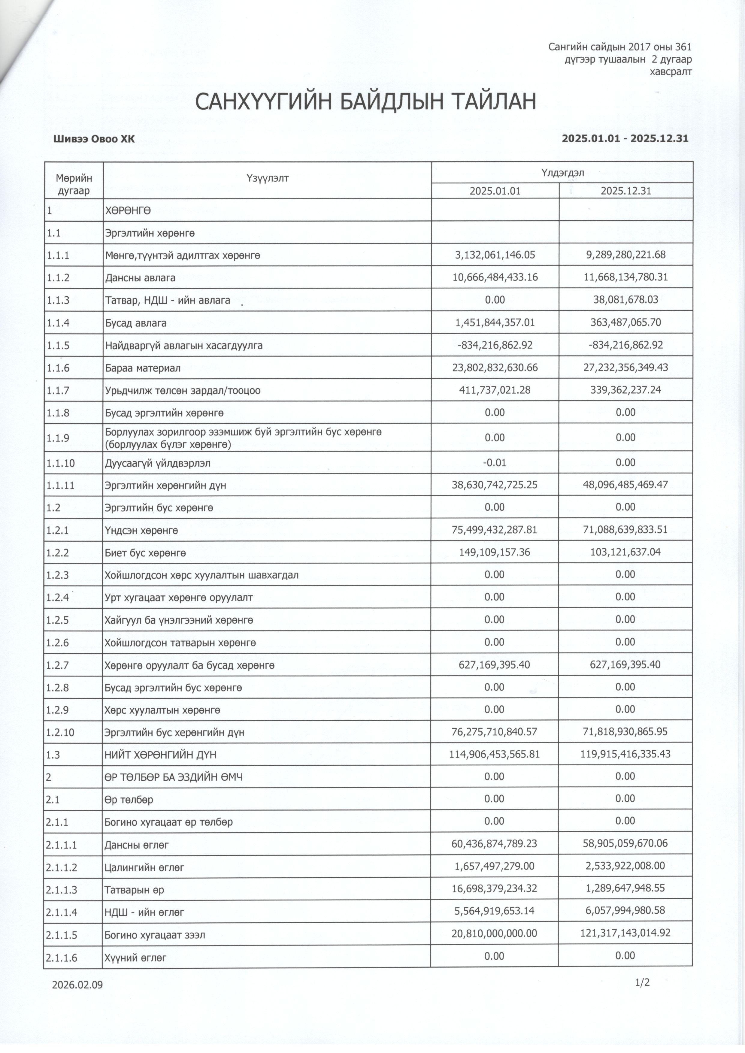 2025 оны Санхүүгийн тайлан