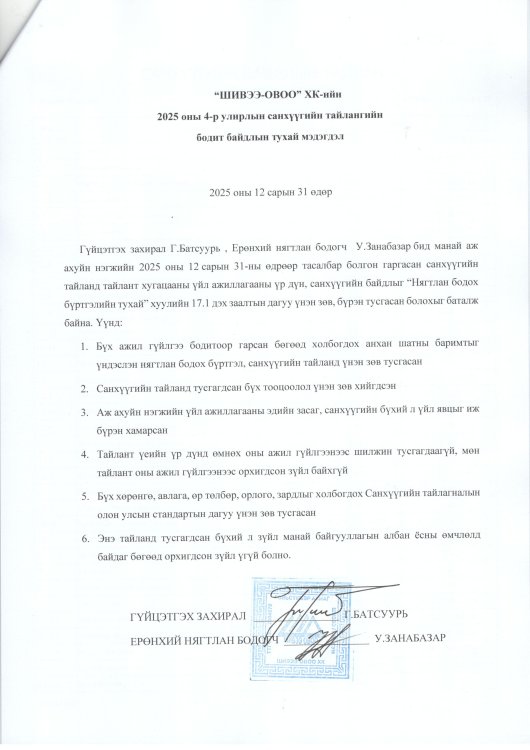 "Шивээ-Овоо"ХК-ийн 2015 оны IV улирлын