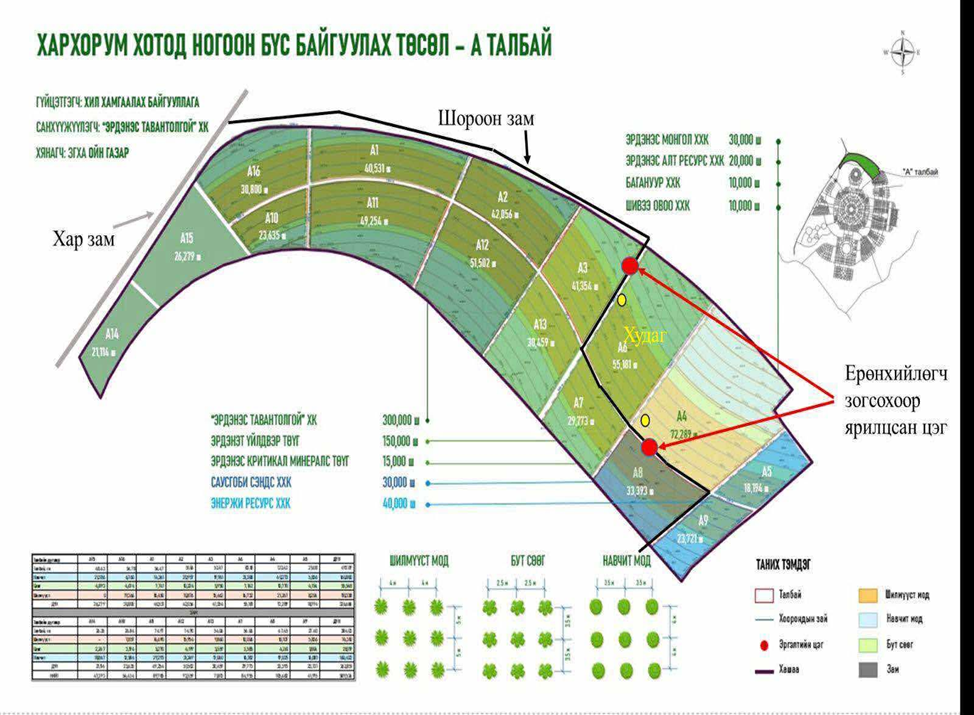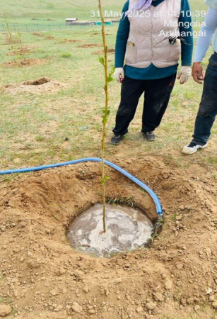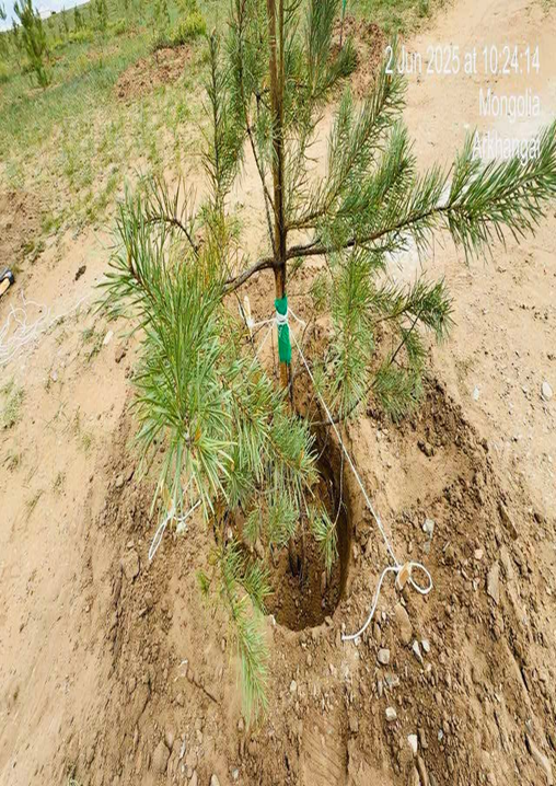 “Шивээ Овоо” ХК-ийн захиалгаар “ХББПБ” ЭКО ХХК нь хаврын мод тарилттөлөвлөгөөний дагуу 10.0 мян.ширхэг мод тарих байсан ба гүйцэтгэлээр төлөвлөгдсөн А4 буюу 18,8 га газарт шилмүүст, навчит, сөөгийн төрлийн 11199 ширхэг модыг технологит хугаацаанд 111,8%-тай тарьсан. Тарилтын дараа 8 дугаар сард ажлын гүйцэтгэлийн явцтай танилцахад тарилтындараах арчилгаа буюу усалгаа хийгээгүйгээс модны ургалт муу, хорогдол их байсан. Үүнд: Шилмүүст:буюу нарс мод 3000 ширхэг таригдсанаас 1208 ширхэг буюу 40%, навчит: буюу хайлаас мод 2172 ширхэг таригдсанаас 1155 ширхэг буюу 53%, улиас 2721 ширхэг таригдсанаас 851 ширхэг буюу 31%, шар хуайс 2282 ширхэг таригдсанаас 1264 ширхэг буюу 55%, сөөг: буюу агч мод 424 ширхэг таригдсанаас 111 ширхэг буюу 26%, голт бор 300 ширхэг таригдсанаас 15 ширхэг буюу 5%, монос 300 ширхэг таригдсанаас 174 ширхэг буюу 58% хорогдсон буюу нийт 11199 ширхэг модны 6421 ширхэг буюу 61.5% нь ургаж, 4778 ширхэг буюу 38.5% нь хорогдсон байдалтай байсан.Иймд компанийн зүгээс тухайн орон нутгийнЛ.Цэндсүрэн, Т.Наранцэцэг гэх хоёр иргэнийг8 дугаар сарын 07-ны өдрөөс 2025 оны 11 дүгээр сарын 01-ний өдөр хүртэл мод арчлах, услах ажилд хөлсөөр ажиллах гэрээ байгуулан, усалгааны 10 тонны нөөцийн сав 2 ширхэг, помп мотор 2 ширхэгийг шууд худалдан авалтаар худалдан авч гэрээт ажилчдад хүлээлгэн өгч усалгааны асуудлыг шийдэж тогтмол усалгаатай болгосон. 10 дугаар сарын 03-ны өдрөөс 10 дугаар сарын 05-ны хооронд Намрын хяналтын тооллогоор Шилмүүст: буюу нарс мод 3000 ширхэг таригдсанаас 1800 ширхэг буюу 60 %, навчит: буюу хайлаас мод 2172 ширхэг таригдсанаас 1017 ширхэг буюу 46.8 %, улиас 2721 ширхэг таригдсанаас 1752 ширхэг буюу 64 %, шар хуайс 2282 ширхэг таригдсанаас 1018 ширхэг буюу 44.6 %, сөөг: буюу агч мод 424 ширхэг таригдсанаас 270 ширхэг буюу 63.6 %, голт бор 300 ширхэг таригдсанаас 189 ширхэг буюу 63 %, монос 300 ширхэг таригдсанаас 226 ширхэг буюу 75.3 % нь ургасан буюу нийт 11199 ширхэг модны 6272 ширхэг буюу 59.6% нь ургаж, 4927 ширхэг буюу 40.4% нь хорогдсон байдалтай байсан. Иймд хорогдсон4927 ширхэг мод нөхөн тарилт хийх ёстойгоос 1700 ширхэг хайлаас модны нөхөн тарилтыг эхэлсэн байсан ба гүйцэтгэгч компани нь А4 талбай дээр 9 хүний бүрэлдэхүүнтэй,20 тонны 2 машинтай нөхөн тарилт, усалгаа арчилгааны ажлыг гүйцэтгэсэн байв. Энэ үед “ХББПБ” ЭКО компанийн төлөөлөл Э.Хаш-ЭрдэнэдНарс мод 1200 ширхэг, агч мод 154 ширхэг, шар хуайс 1264 ширхэг, голт бор 111 ширхэг, монос 74 ширхэг, улиас 969 ширхэг буюу нийт 3772 ширхэг модны нөхөн тарилт хийх, тарилтын дараах усалгаа, намрын цэнэгусалгааны ажлыггүйцэтгэл сайтай хийх чиглэлийг өгч ажилласан.