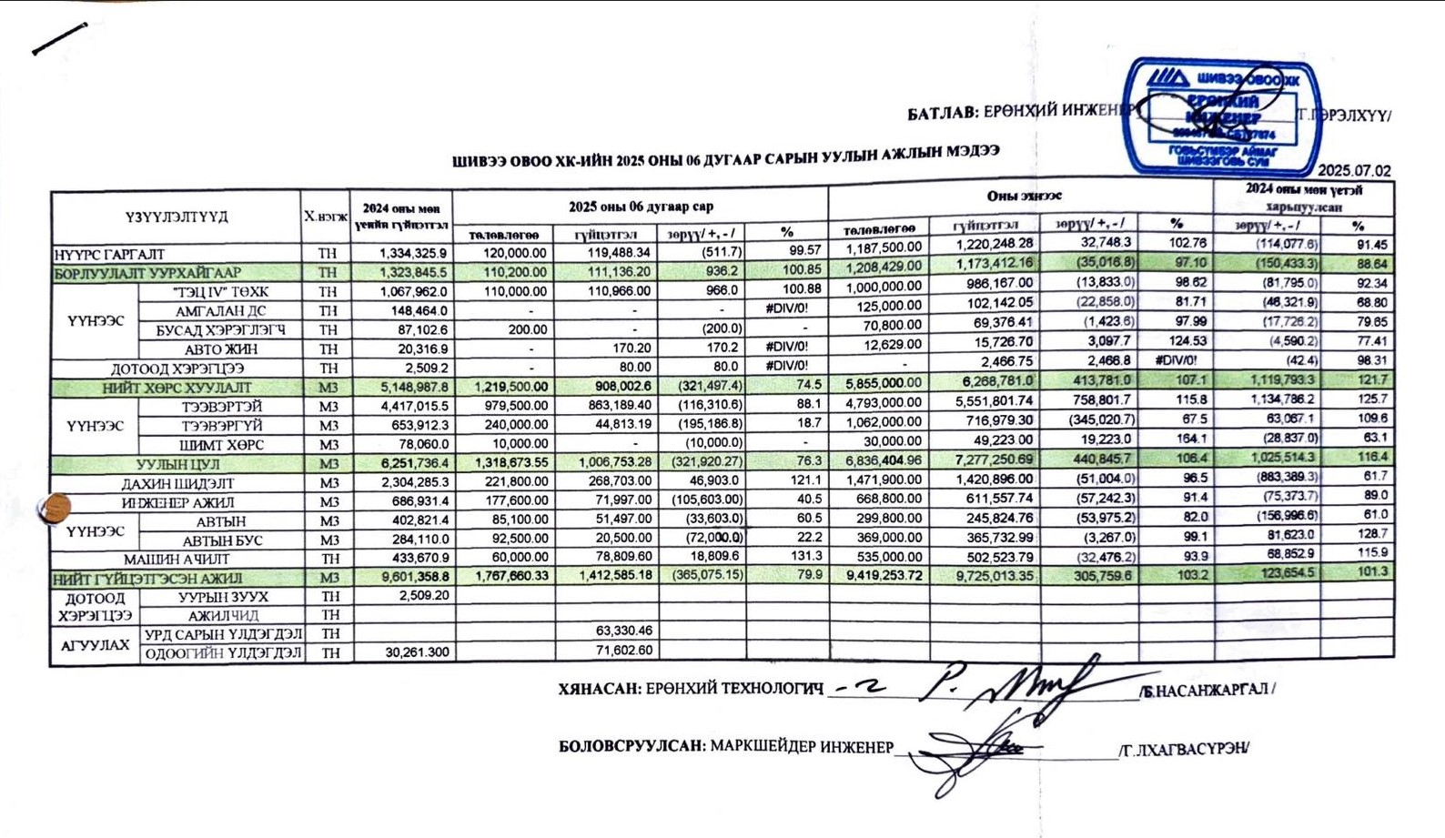 2025 ОНЫ 6 САРЫН УУЛЫН АЖЛЫН МЭДЭЭ